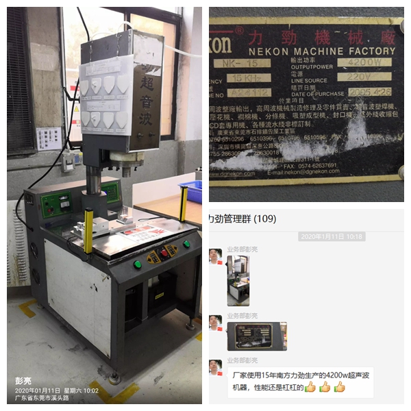 有多少次,在面對客戶對我們的超聲波焊接機價格提出質疑時,我們費盡口舌告訴他,我們核心配件全采用進口品牌,我們自有研發技術團隊與核心技術做為品質的支撐。我們不是小作坊式的生產,我們是正規有20多年超聲波焊接設備研發生產經驗,也取得了ISO9001與歐洲CE雙認證的現代化機械制造企業。但是當我們業務人員在客戶那邊傳回這張圖片時,小編覺得說一切都是多余的,事實是最好的證明,那就是南方力勁生產的超聲波焊接機,經得起時間的考驗,經得起市場的考驗。我們無愧于“以中國制造2025與工業4.0為契機,把提升中國制造業水平為己任“的宏愿!未來已來,智慧隨行,超聲波焊接設備生產廠家東莞市南方力勁機械有限公司期待在未來,我們一起同行,一起見證、助力彼此的成長。