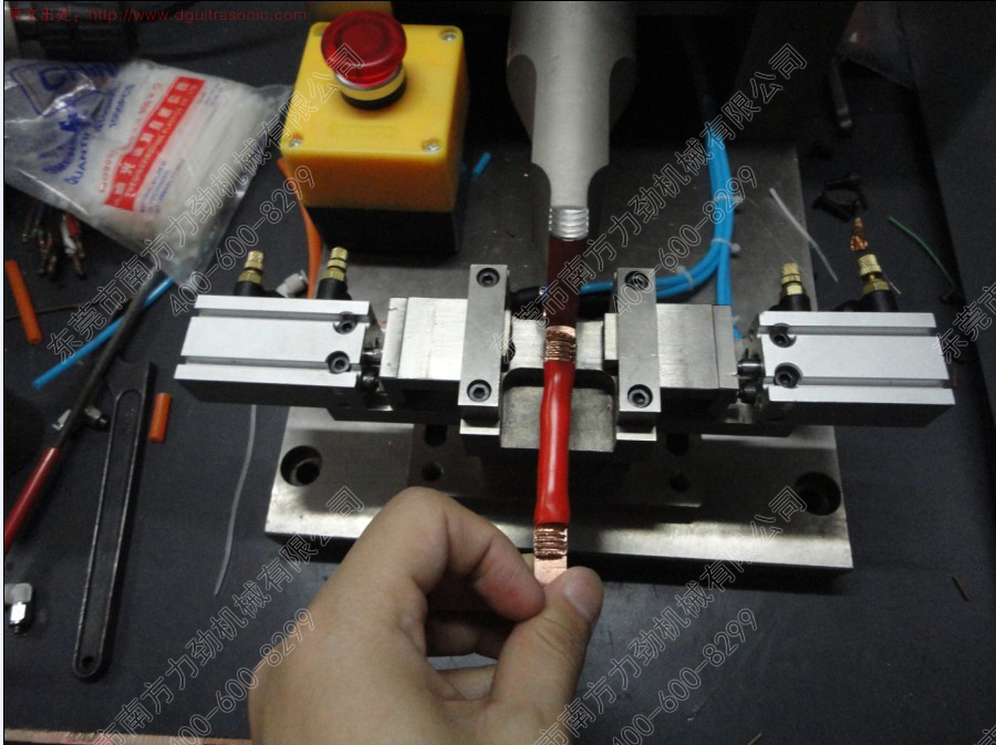 超聲波焊接機超聲波振動是用磁致伸縮換能器產生的,傳振桿的型號是根據向焊池中導入振動的方法選擇的,供給換能器的功率在0.7~2.5KW之間變化,振幅為10~40微米,振動頻率在全部試驗中相同,約為20K赫茲。