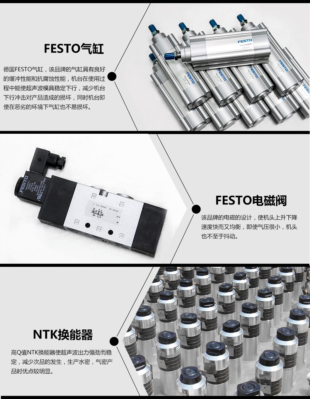 南方力勁機械有限公司是一家大型的超聲波設備研發、生產及銷售企業,公司塑焊機事業部從事生產標準塑焊機,2600W-3200W塑焊機,4200W-5200W塑焊機等大功率焊接設備;15K、20K、28k、40K等精密型焊接設備,還有非標塑焊機設備,雙頭塑焊機、四頭塑焊機、六頭塑焊機、中空板膠框焊接機、護欄管焊接機、熱板機、旋轉式熔接機、汽車門板焊接機、汽車儀表盤焊接、汽車遮陽板焊接機、汽車燈焊接機、汽車保險杠焊接機等,同時為客戶設計非標自動化塑膠焊接設備。