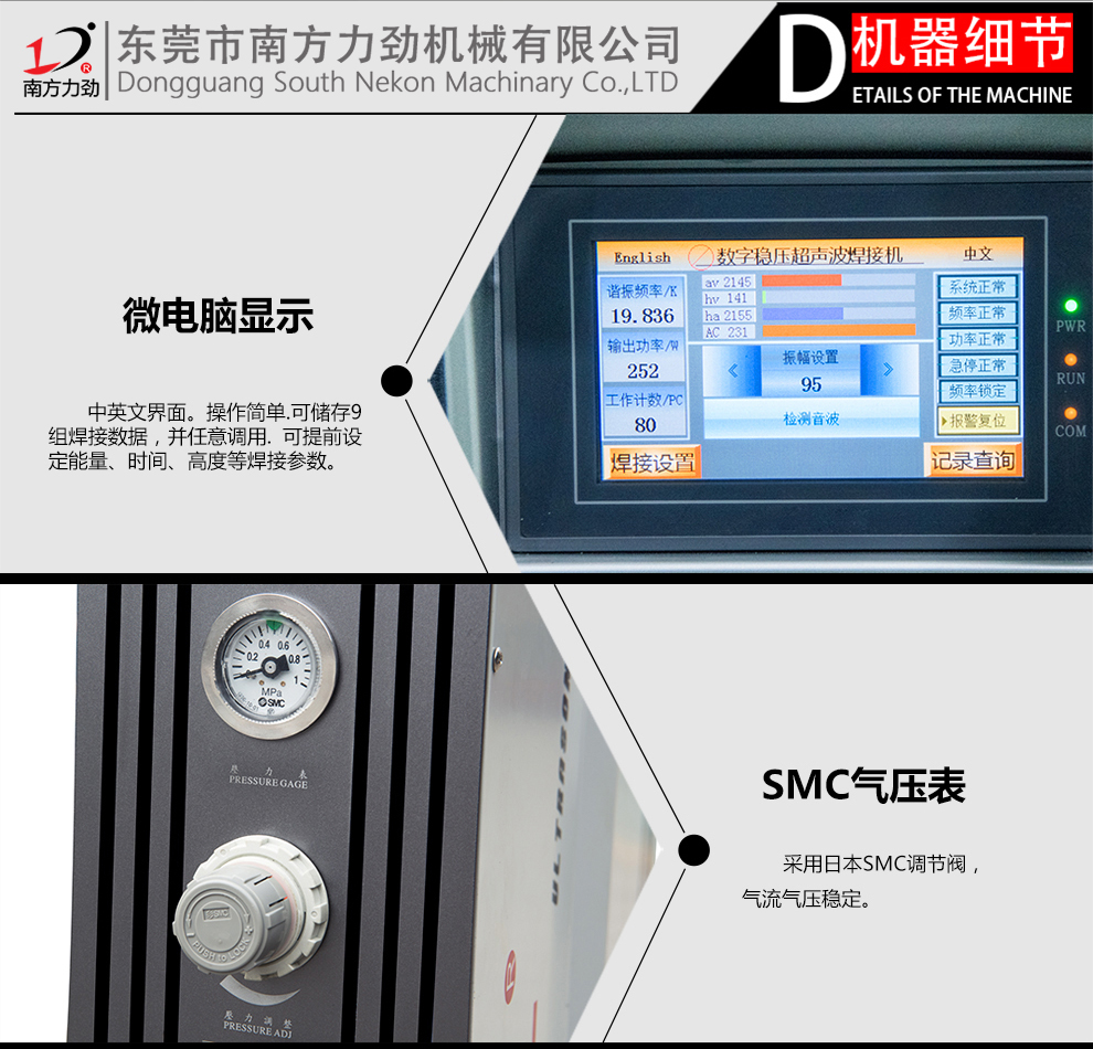南方力勁機械有限公司是一家大型的超聲波設備研發、生產及銷售企業,公司塑焊機事業部從事生產標準塑焊機,2600W-3200W塑焊機,4200W-5200W塑焊機等大功率焊接設備;15K、20K、28k、40K等精密型焊接設備,還有非標塑焊機設備雙頭塑焊機四頭塑焊機、六頭塑焊機中空板膠框焊接機護欄管焊接機熱板機旋轉式熔接機汽車門板焊接機汽車儀表盤焊接汽車遮陽板焊接機汽車燈焊接機汽車保險杠焊接機等,同時為客戶設計非標自動化塑膠焊接設備