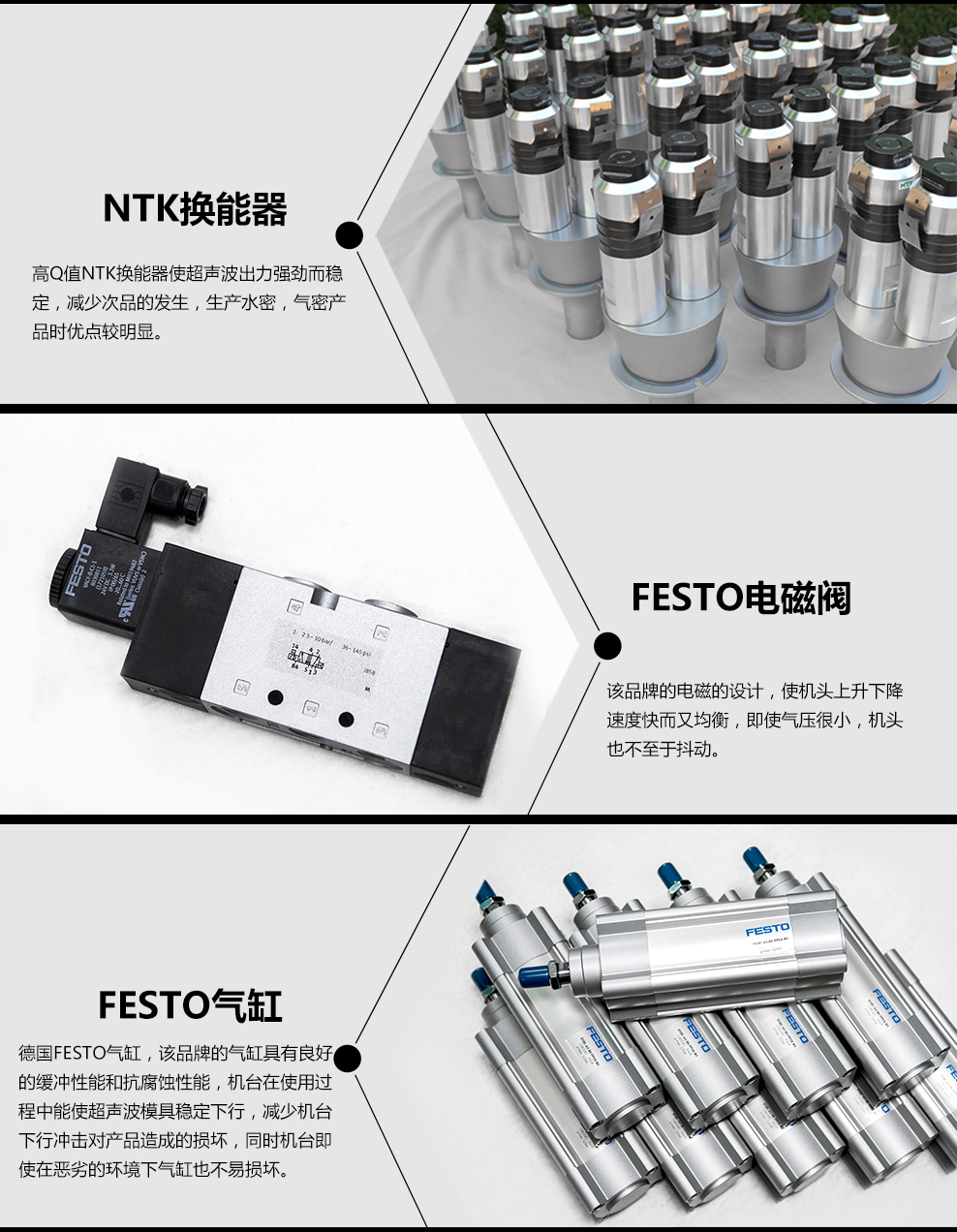南方力勁機(jī)械有限公司是一家大型的超聲波設(shè)備研發(fā)、生產(chǎn)及銷售企業(yè),公司塑焊機(jī)事業(yè)部從事生產(chǎn)標(biāo)準(zhǔn)塑焊機(jī),2600W-3200W塑焊機(jī),4200W-5200W塑焊機(jī)等大功率焊接設(shè)備;15K、20K、28k、40K等精密型焊接設(shè)備,還有非標(biāo)塑焊機(jī)設(shè)備雙頭塑焊機(jī)四頭塑焊機(jī)、六頭塑焊機(jī)中空板膠框焊接機(jī)護(hù)欄管焊接機(jī)熱板機(jī)旋轉(zhuǎn)式熔接機(jī)汽車門板焊接機(jī)汽車儀表盤焊接汽車遮陽板焊接機(jī)汽車燈焊接機(jī)汽車保險(xiǎn)杠焊接機(jī)等,同時(shí)為客戶設(shè)計(jì)非標(biāo)自動化塑膠焊接設(shè)備