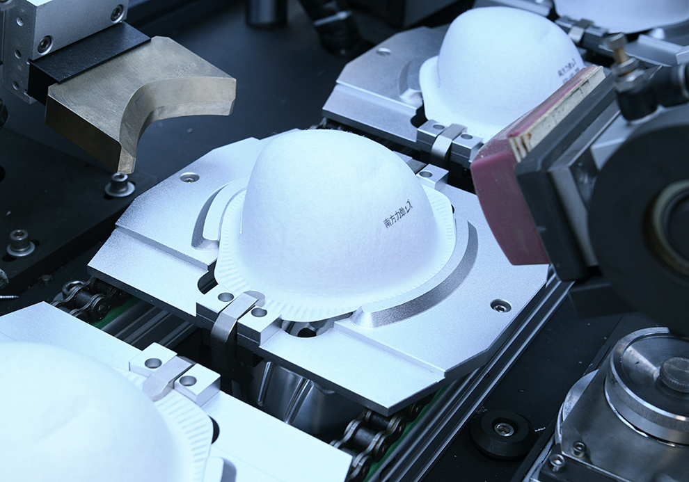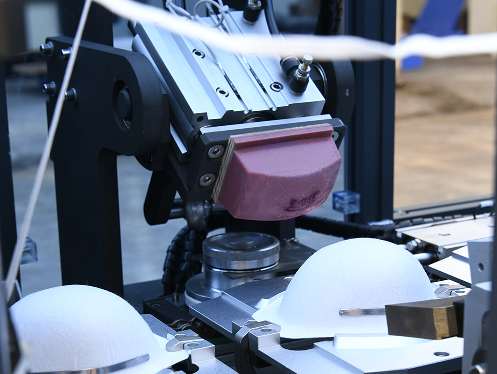本機自動送料、熱貼鼻梁條、移印、焊耳帶、沖呼吸閥孔、自動上呼吸閥、自動焊接呼吸閥、自動出料堆疊等工序。