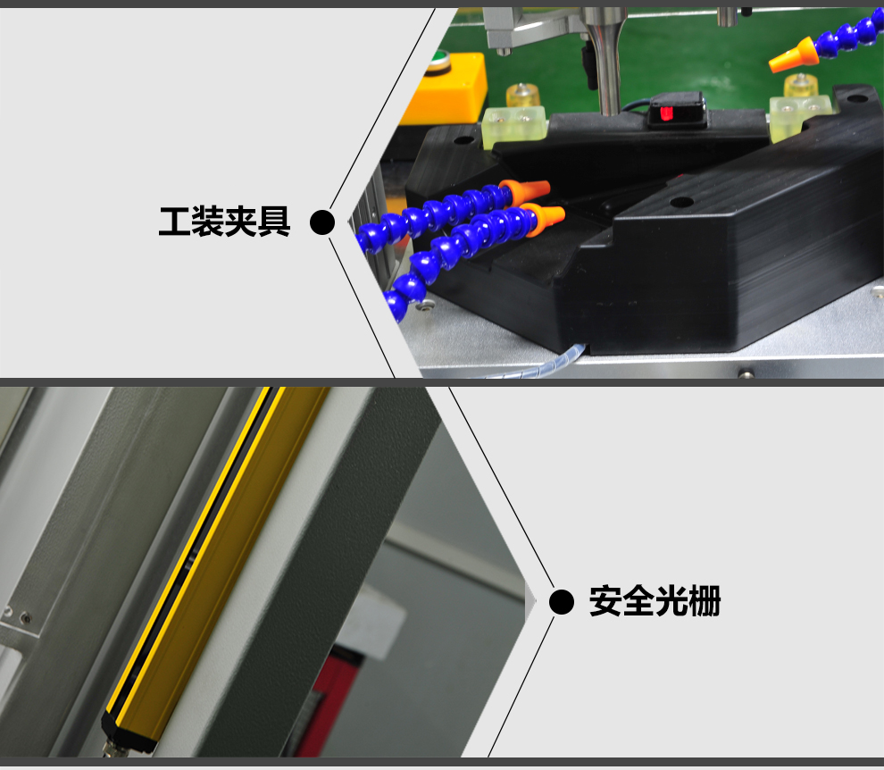 1.采用雙工位焊接,左右焊接區(qū)域切換焊接,可節(jié)約人工取放料時間,增添生產(chǎn)效率;